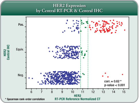 Η ποσοτικοποίηση του HER2 που παρέχεται μαζί με το Oncotype DX είναι μια άλλη μέτρηση που χρησιμοποιούν οι ιατροί και οι ασθενείς για να καθορίσουν την κατάσταση του HER2 και παρέχει επιπλέον πληροφόρηση στην βιολογία του όγκου του ασθενή παρόλο που ο Βαθμός Υποτροπής (Recurrence Score) παραμένει το καλύτερο εργαλείο για τον υπολογισμό της πρόγνωσης και της πρόβλεψης για το όφελος από τη χημειοθεραπεία. - Υψηλή Συμφωνία με Ανοσοϊστοχημεία12 και FISH13: