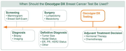 Κατά τη διάρκεια του χειρουργείου ο χειρουργός μαστού θα αφαιρέσει τον καρκίνο μαστού και τον περιβάλλοντα ιστό και αυτό εξετάζεται και διατηρείται από τον παθολογοανατόμο. Ο παθολογοανατόμος θα στείλει τομές του καρκινικού ιστού στο εργαστήριο της Genomic Health® (της εταιρίας που δημιούργησε την εξέταση Oncotype DX) μέσω της GeneKor (της εταιρίας που εκπροσωπεί το Oncotype DX στην Ελλάδα και τη Κύπρο). Τα αποτελέσματα της εξέτασης Oncotype DX για καρκίνο μαστού έπειτα αποστέλλονται στον γιατρό* σας προκειμένου να βοηθήσουν εσάς και τον γιατρό σας να δημιουργήσετε ένα θεραπευτικό πλάνο βασισμένο στα μοναδικά χαρακτηριστικά του καρκίνου σας.