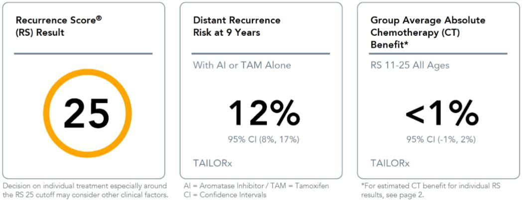 Recurrence Score ranges shown reflect randomized patients in NSABP B-20 and TAILORx.