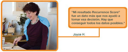 Al considerar la mejor opción de tratamiento adyuvante para el cáncer de mama incipiente, el médico suele tener en cuenta su edad, estado de salud general y circunstancias personales, así como el tamaño y grado del tumor y si están afectados los ganglios linfáticos. Al analizar la biología de las propias células del tumor, el test Oncotype DX® puede añadir información valiosa a esos factores. El test Oncotype DX puede ayudar, por tanto, a su médico y a usted misma a tomar una decisión más fundamentada y personalizada sobre si debe o no tratarse con quimioterapia, basada en la información adicional de la biología específica de su cáncer.